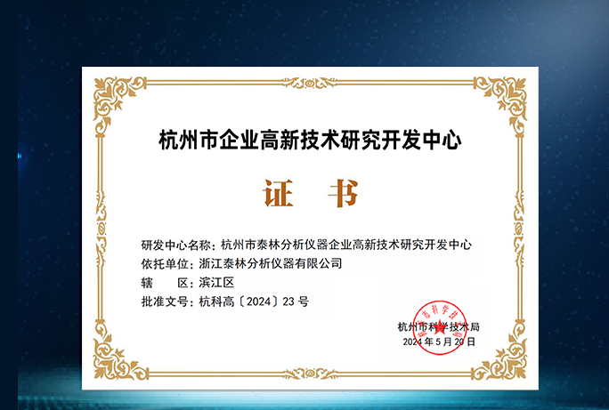 创新实力再获肯定!泰林分析荣获杭州市企业高新技术研究开发中心认证